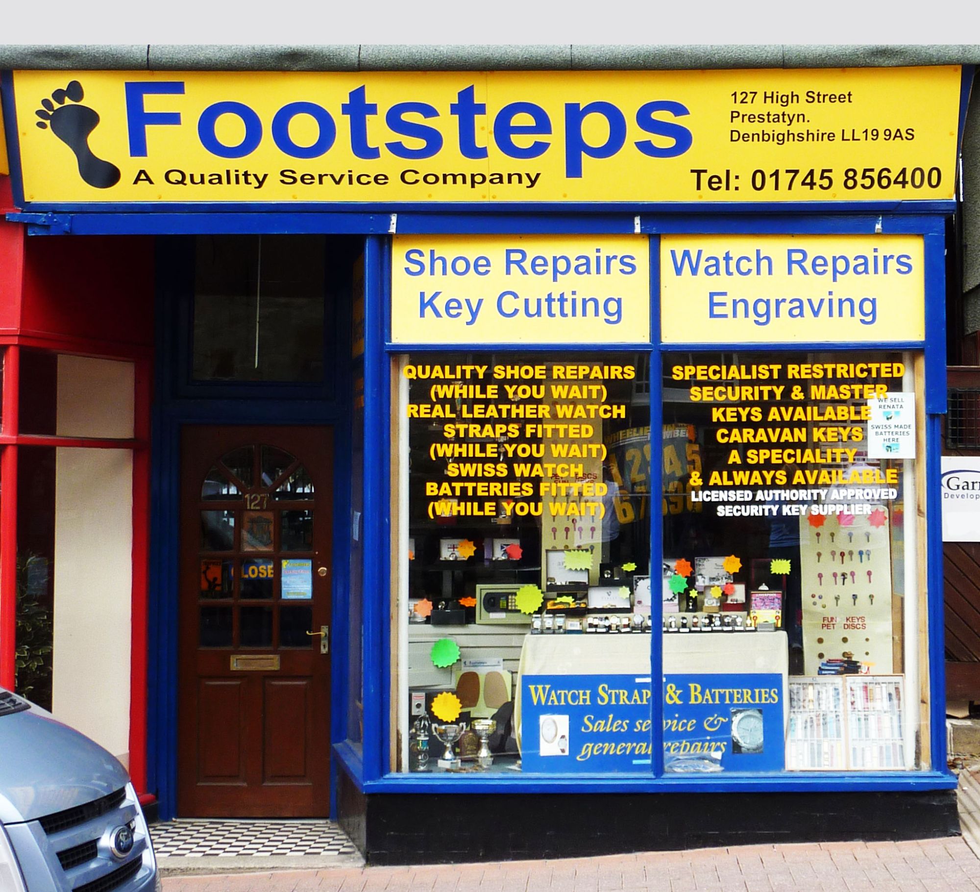 Footsteps Shoe Repairs - 127 High Street, Prestatyn, Denbighshire, LL19 9AS